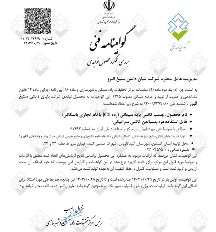 2. ضخامت لایه اجرا 3 تا 5 میلیمتر توصیه میشود.